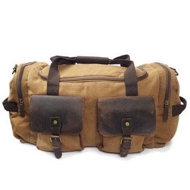 This Travel Bag/Duffel is made of waxed canvas, fully covered with leather components. It is equipped with two large side zip pockets, as well as two front pockets with leather covers, with magnet buckles for easy access.