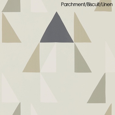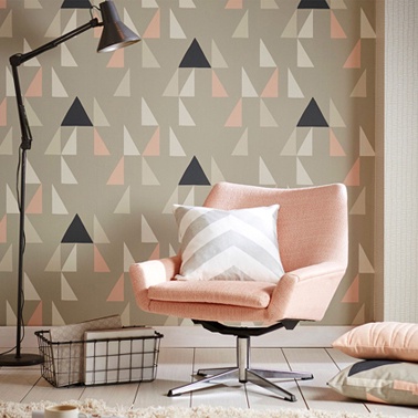 A stylish graphic geometric wallpaper design featuring sparsely spaced triangles. From Scion's Lohko collection. Co-ordinating fabrics available.