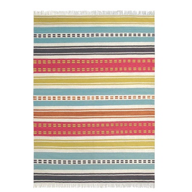 This 100% NZ Wool flatweave rug by Scion has a casual striped design with striking colours and tufted ends