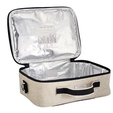 Inspiring artwork and eco-friendly linen make the Bunny Tile Insulated Lunch Box an enlightened choice for health-conscious parents. Love to make a nourishing lunch together in the morning? Now you and your little one can also collaborate on clean-up: the handy removable insert makes wiping up messes a snap. This versatile lunch box can be worn either messenger or backpack style - just loop the extendable strap through the carrying handle.