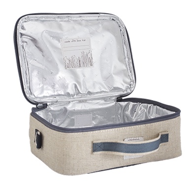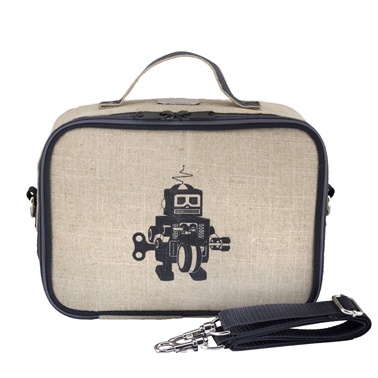 Inspiring artwork and eco-friendly linen make the Robot Insulated Lunch Box an enlightened choice for health-conscious parents. Love to make a nourishing lunch together in the morning? Now you and your little one can also collaborate on clean-up: the handy removable insert makes wiping up messes a snap. This versatile lunch box can be worn either messenger or backpack style - just loop the extendable strap through the carrying handle.