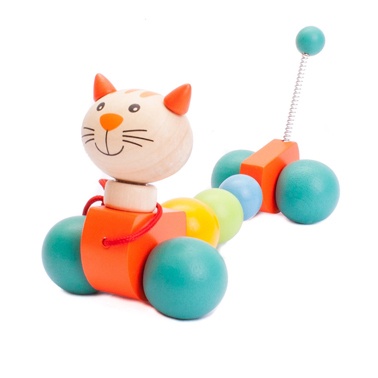 Super cute wooden pull along cat. Colourful, bright and intruiging, a great toy for children. Recommened for children aged 1 year and above. Dimensions: 20cm long